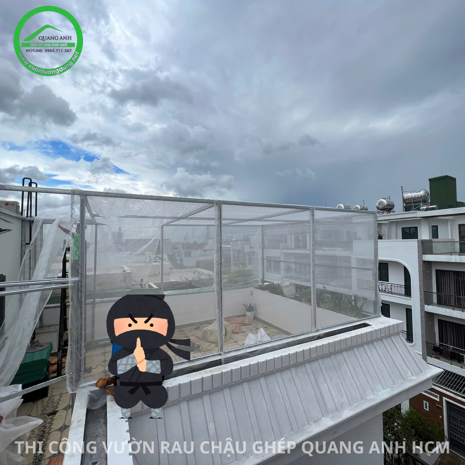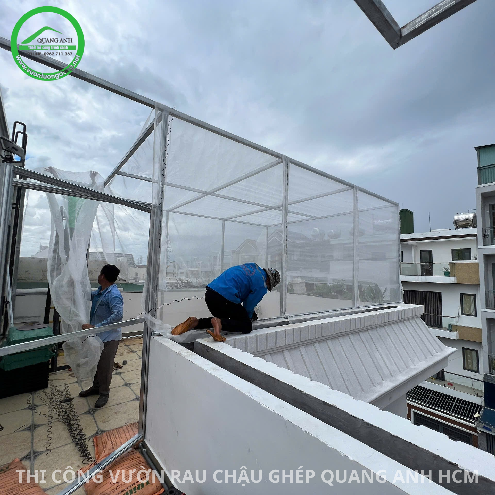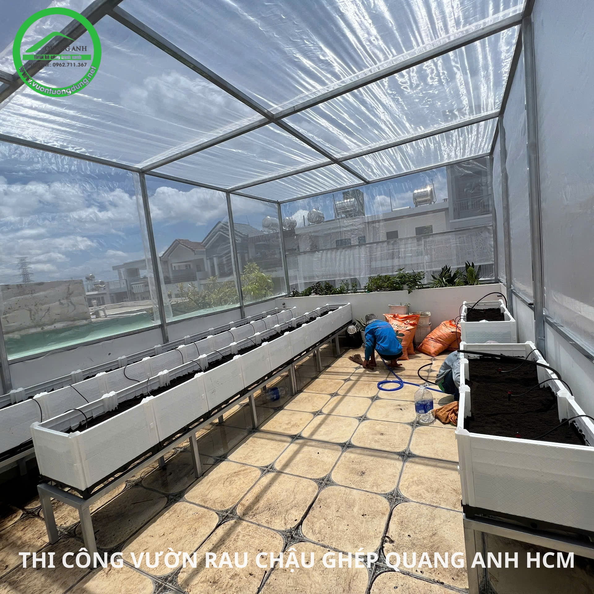Một vườn rau hiện đại như thế này được hoàn thiện chỉ trong một ngày duy nhất, cam kết không câu ngày, giờ làm.